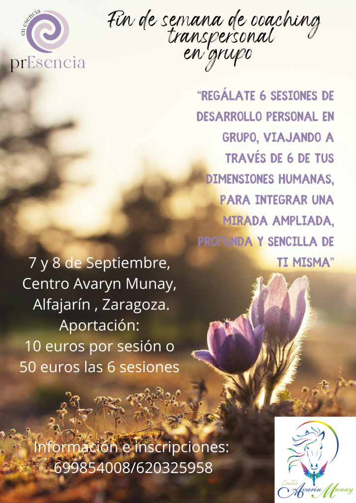 Presencial intensivo: Primera edición los próximos 7 y 8 de Septiembre en el centro de Avarin Munay, Alfajarín, Zaragoza.